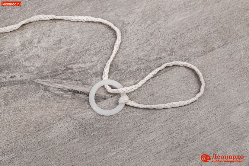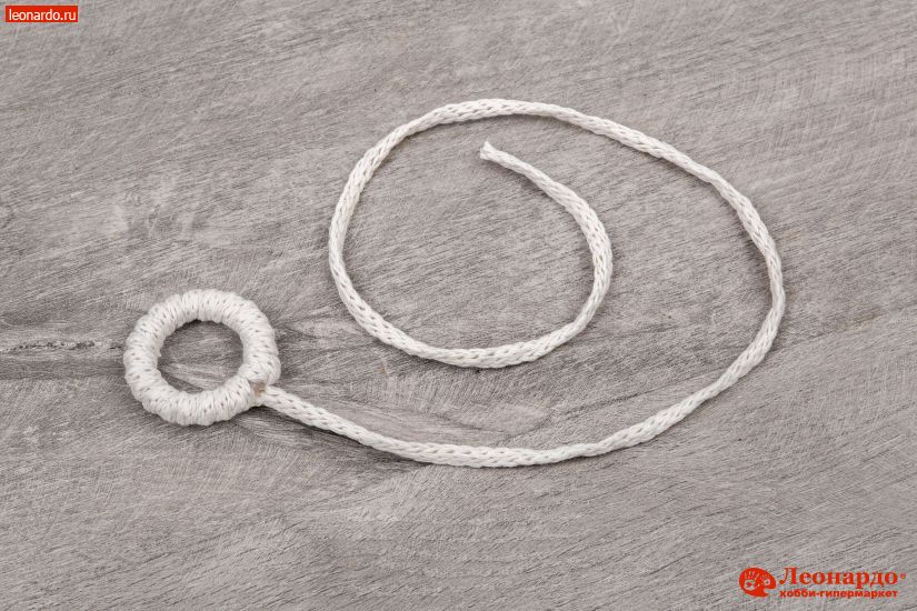 2. Берём отрезок шнура длиной 1 м. На кончик шнура наносим универсальный клей. Приклеиваем шнур на кольцо GAMMA (арт. RKR-38). Далее обматываем кольцо.