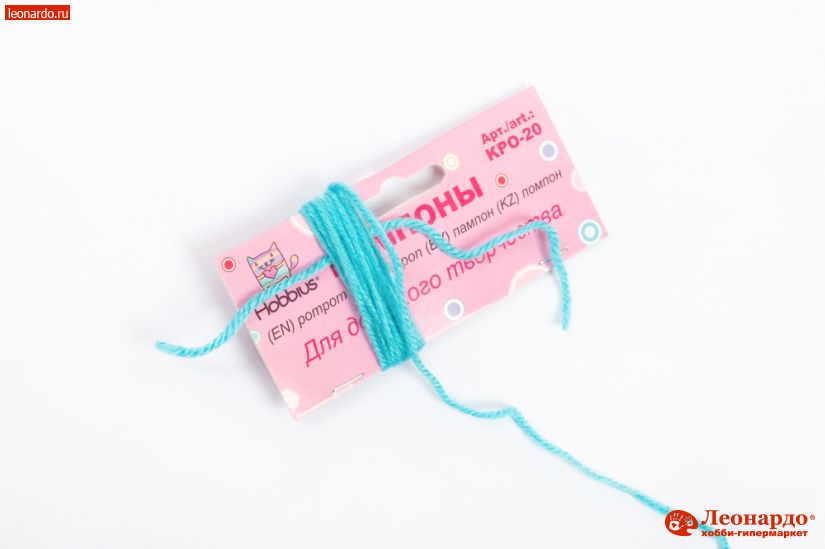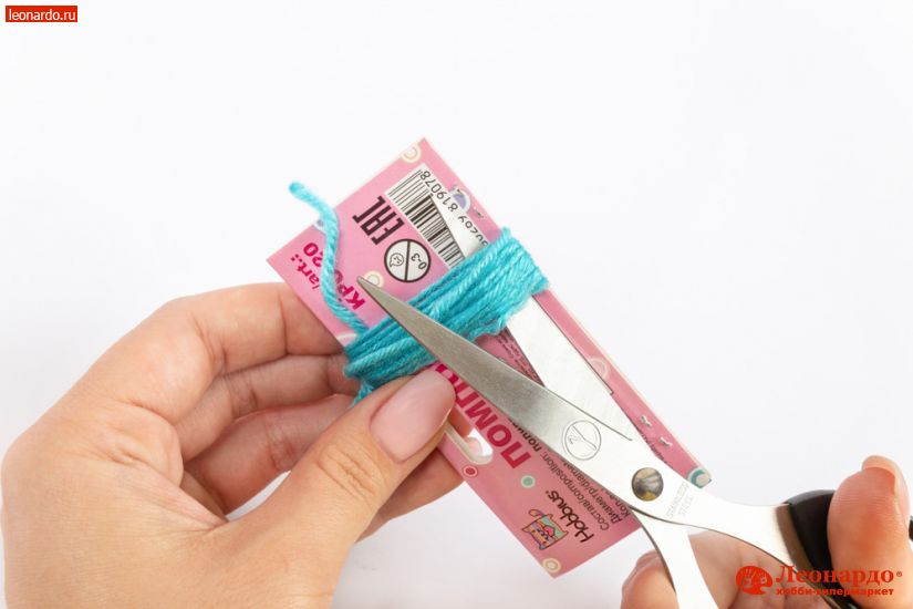 1. Начнем изготовление праздничной гирлянды с кисточек из ниток. Для этого можно использовать любой картон или картон из упаковки помпонов Hobbius. Отрежем фиксирующую нить от пряжи ADELIA (арт. IVIA) около 12 см, и обмотаем длинной нитью картон. Фиксирующая нить должна остаться зажата под намоткой. Чем больше витков – тем пышнее будет кисточка.