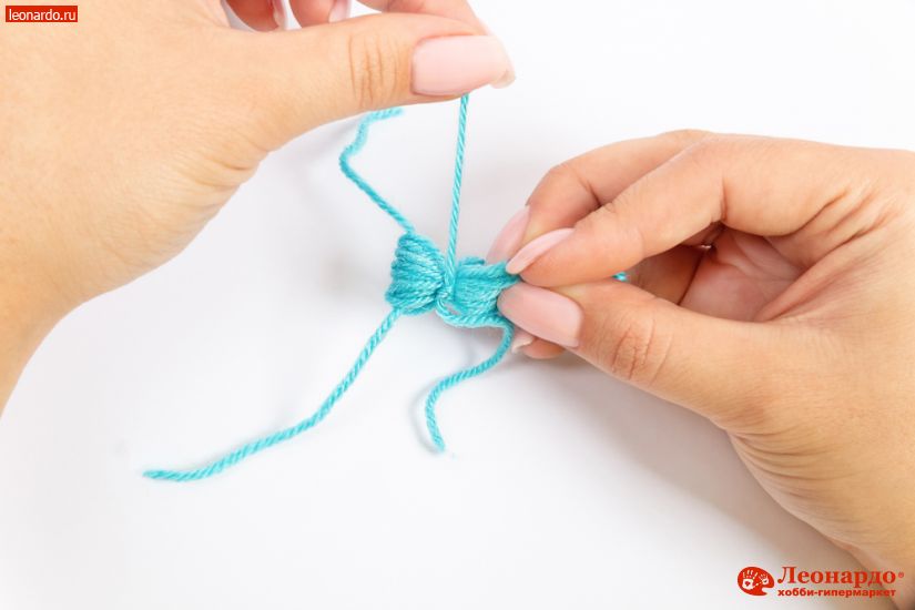 2. Завяжем фиксирующую нить в один узел, позже ее нужно будет снять, поэтому необходимости затягивать сильно нет.