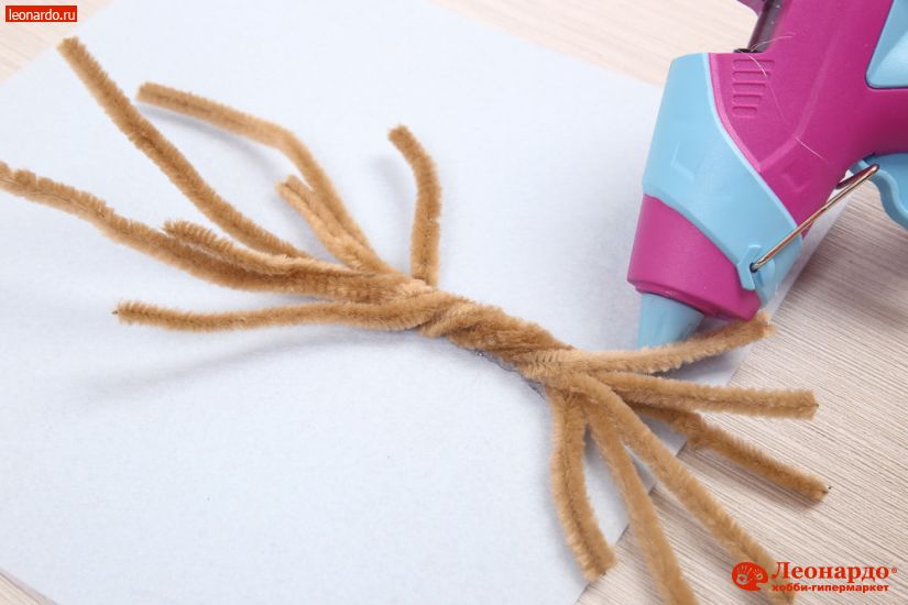 3. Берем 5 полосок коричневого шенила Hobbius (арт. KPZ-6), две из них делим пополам.