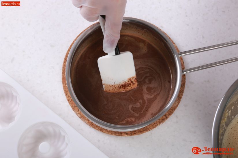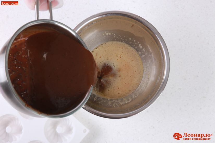 4. Смешать две получившиеся массы (яичную и шоколадную). Все хорошо перемешать.