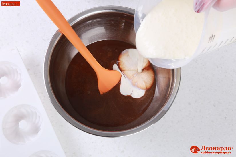 6. Добавить взбитые сливки к шоколадной основе, перемешать до получения однородного мусса.