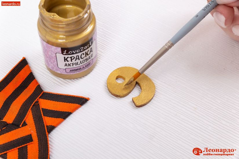 4. Пока заготовка склеивается окрашиваем деревянную заготовку Mr. Carving (арт. ВД-295 Набор «Декоративные цифры 1-12») в золотой цвет.