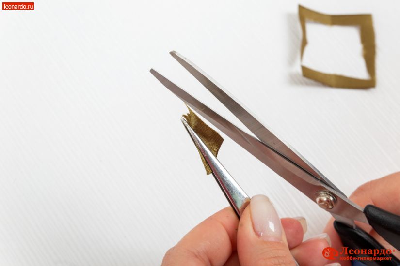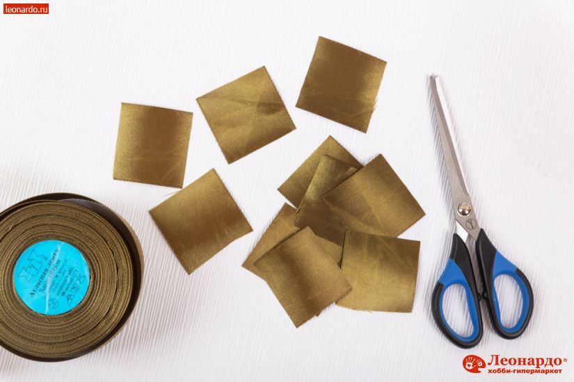 5. Из атласной ленты GAMMA (50 мм (2 ") № 144 т) цвета хаки нарезаем 11 квадратов 4 х 4 см.