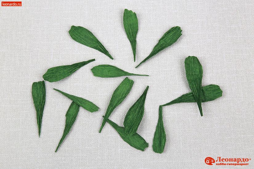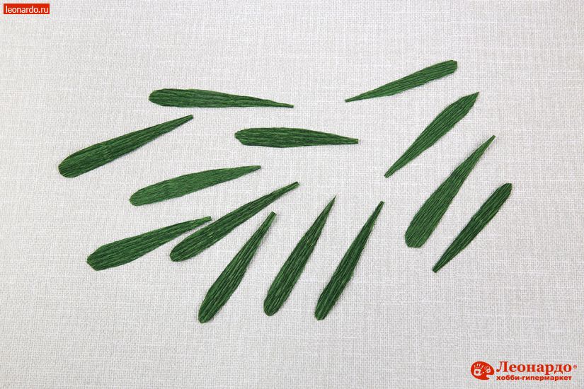 4. Зеленую гофрированную бумагу Blumentag (арт. GOF-180) нарежем на полоски размером 1x6 см.