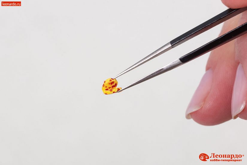 11. Для окрашивания губы используем сухую пастель VISTA-ARTISTA (арт. VAFP-24) желтого, оранжевого, красного и малинового цветов. Набранный краситель наносим на вырезанную деталь с 2х сторон. Сначала прокрашиваем желто-оранжевым цветом среднюю часть детали, затем красно-малиновым цветом оставшуюся часть детали. Торцы детали также необходимо прокрасить. Переходы между желтым и красным цветом необходимо смягчить (размыть) влажной салфеткой.