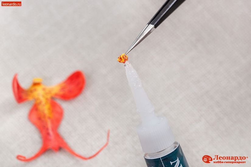 22. На сгиб детали наносим каплю супер клей-геля NORMAN (арт. SGN-001) и приклеиваем по центру губы (на показано на фото).