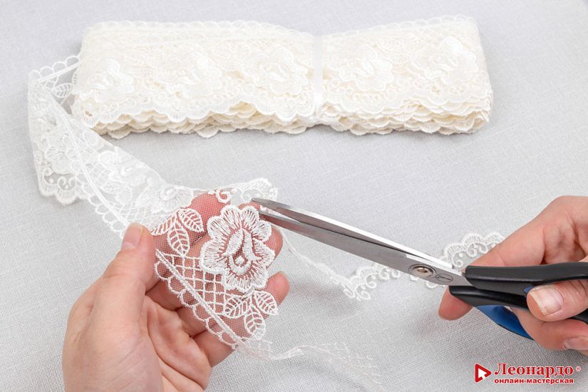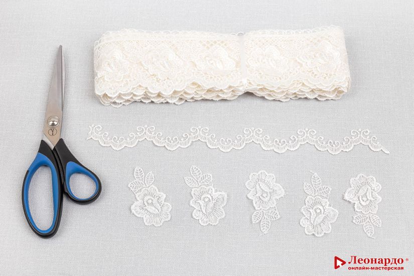 3. Из кружева "сетка" GАММА (арт. GKM-7001 TL003CR кремовый) вырезаем фрагменты цветов и бордюрчик.