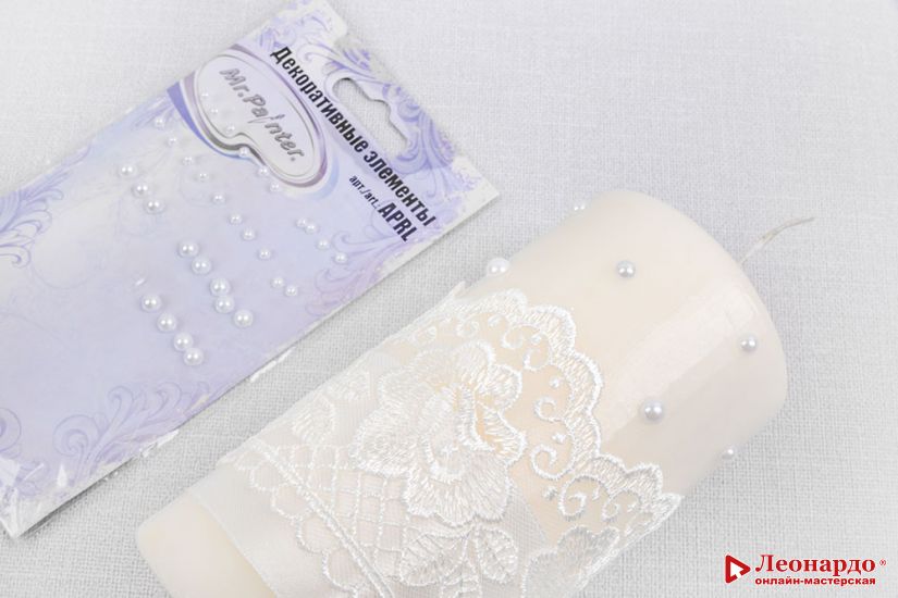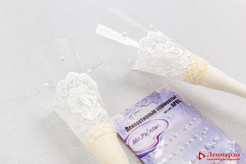 5. Декорируем промежуток между кружевом декоративными элементами" Mr.Painter (арт. APRL-01 Белый)