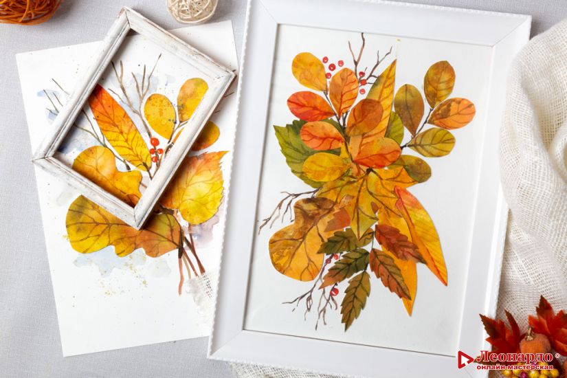 Разноцветные осенние листья – удивительная палитра красок! Все оттенки от яркого желто-зеленого до почти фиолетового бордового и коричневого вдохновляют художников любого возраста. Наш мастер-класс по созданию картины с осенними листьями подойдет и опытным акварелистам и начинающим художникам, и родителям с детьми. Оригинальная техника, совмещающая акварельную живопись и аппликацию, вдохновит вас на создание яркой творческой работы в подарок или для украшения домашнего интерьера.