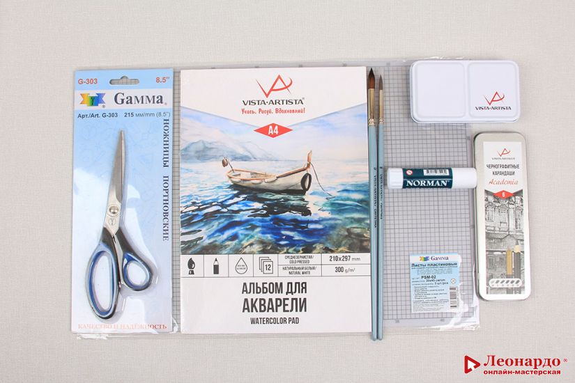 1. Бумага для акварели "VISTA-ARTISTA" WCPP-A4 Альбом для акварели 300 г/м2 А4 склейка с одной стороны 12 л. cold pressed / среднезернистая