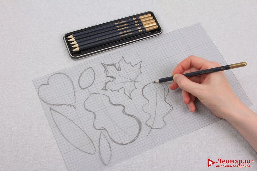 5. Пока покрашенные листы бумаги сохнут, рисуем на пластиковом листе для создания шаблонов выкройки листьев. Они могут быть любой формы и разных размеров.
