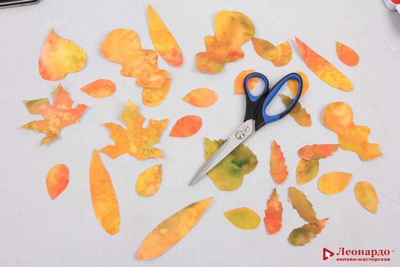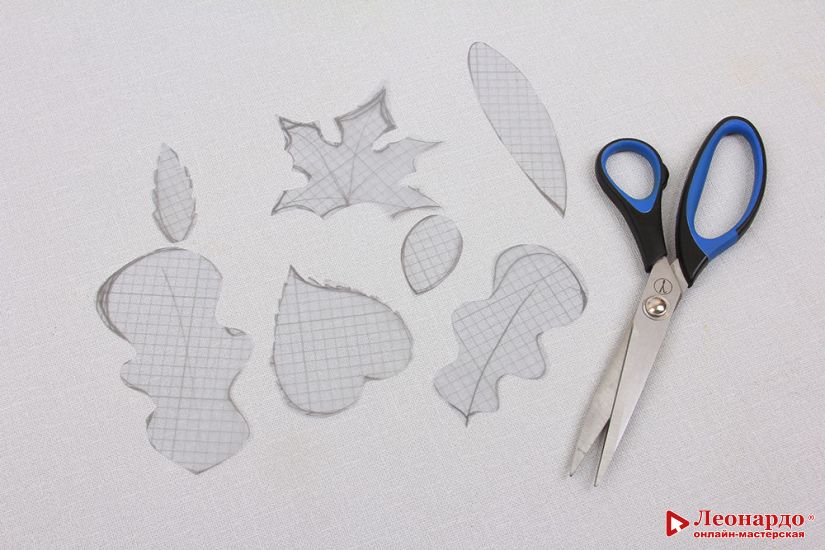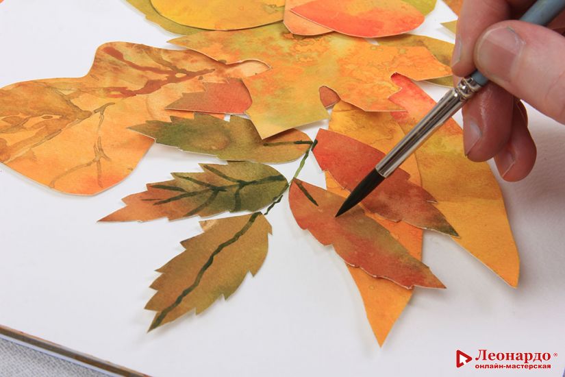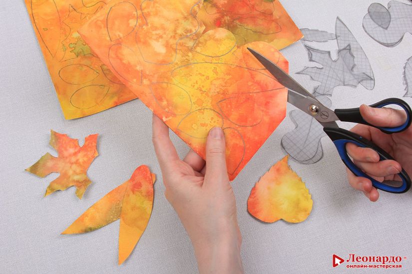 8. Вырезаем все получившиеся листья из акварельной бумаги.