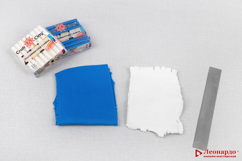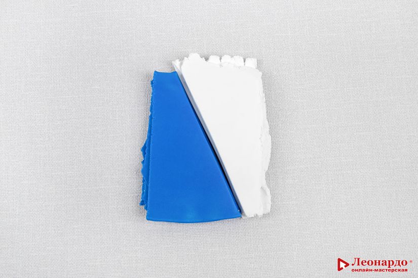 1. Разминаем брусок глины CRAFT&CLAY (арт. CCH) синего и белого цвета, подготавливаем из каждого кусочка прямоугольный пласт.