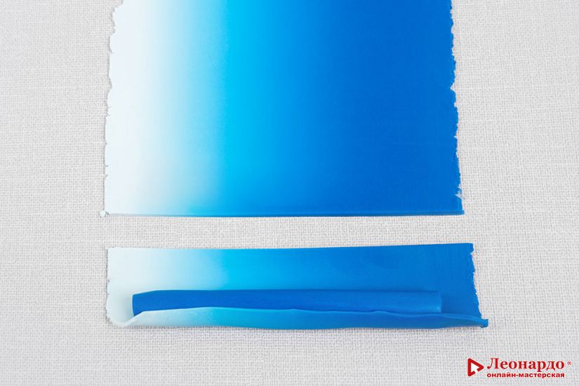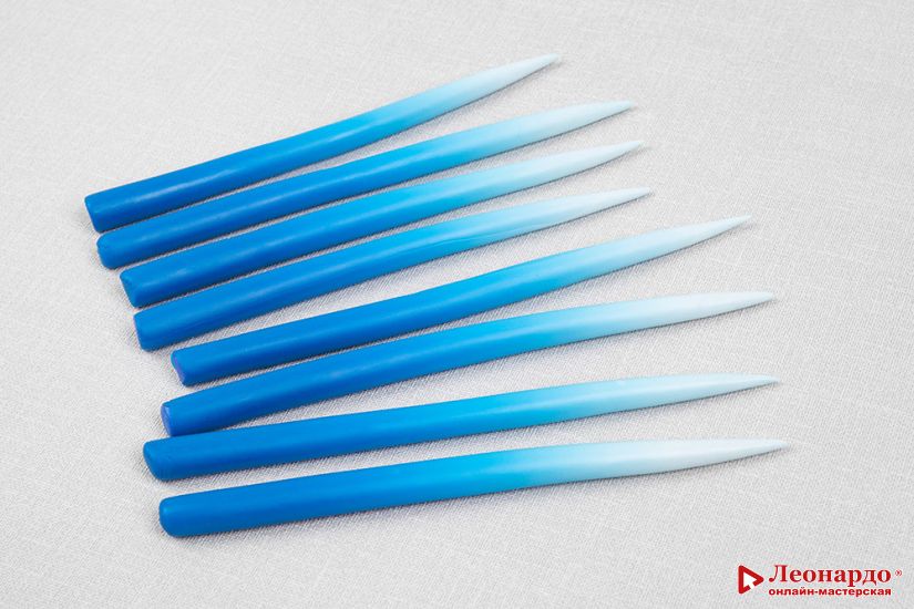 7. Прокатываем на рабочей поверхности так, чтобы светлый конец сходил на нет, а синий оставался исходной толщины.
