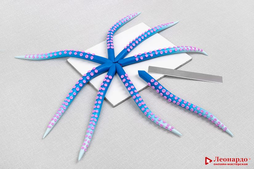 12. Подрезаем основания щупалец резаком Craft&Clay (арт. CCQ-05) под углом для того, чтобы они лучше состыковались между собой, и соединяем как показано на фото.