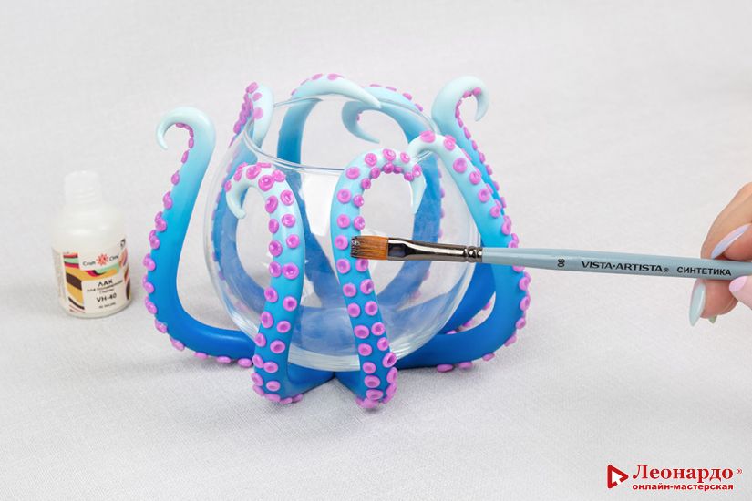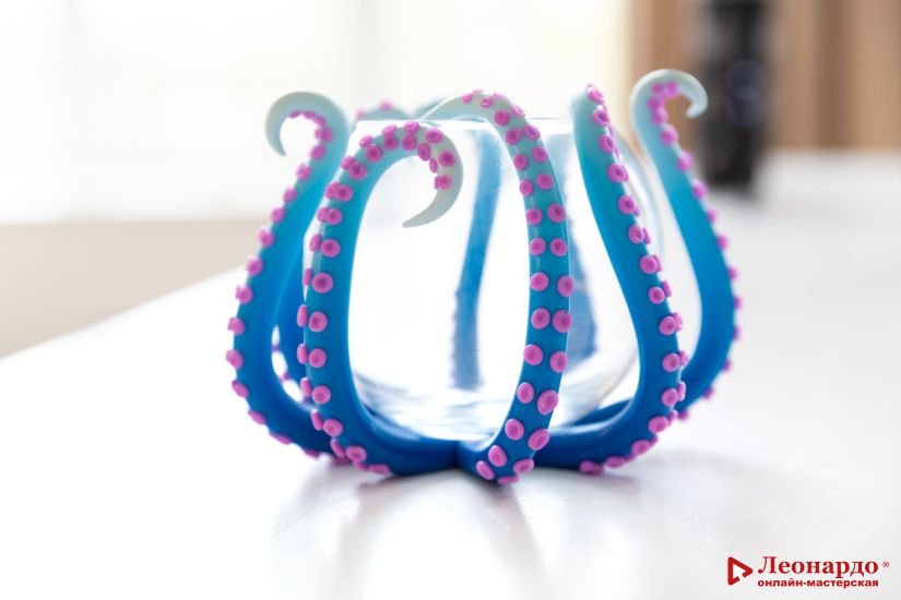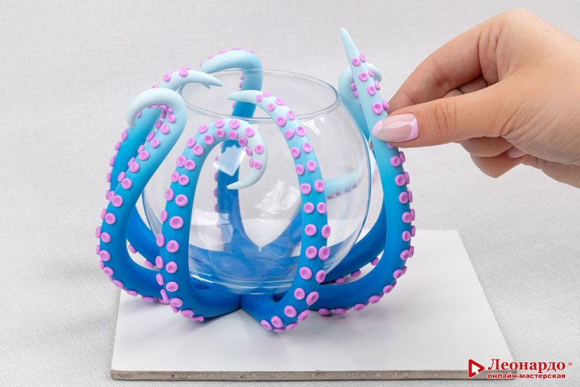 По нашему мастер-классу вы легко создадите декоративное кашпо из стеклянной основы, оплетенное щупальцами морского гиганта. А сделать их можно из полимерной глины CRAFT&CLAY.