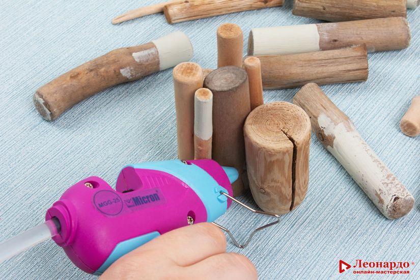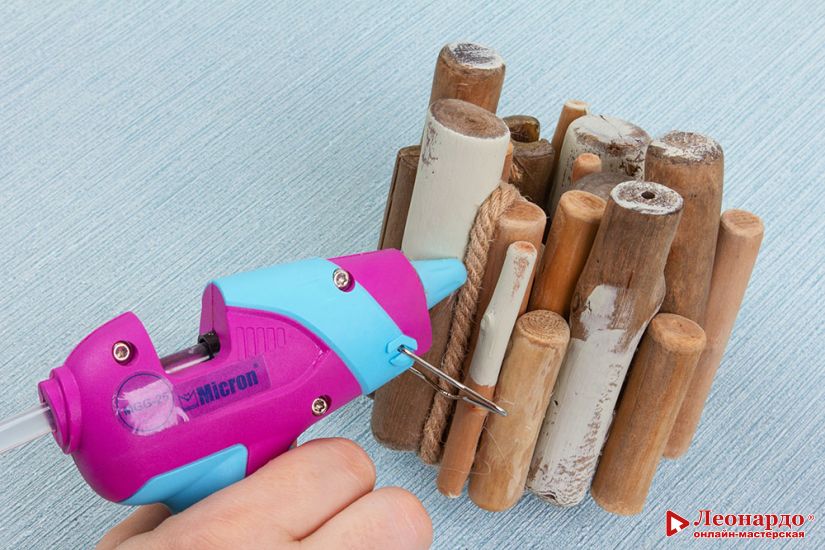 2. Склеим дрифтвуд клеевым пистолетом Micron (арт. MGG-25), образовав круг.