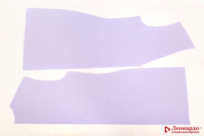 1. Выкраиваем из ткани по выкройке две полочки и деталь спинки со сгибом. Припуски на швы добавляем со всех сторон 1,5 сантиметра.