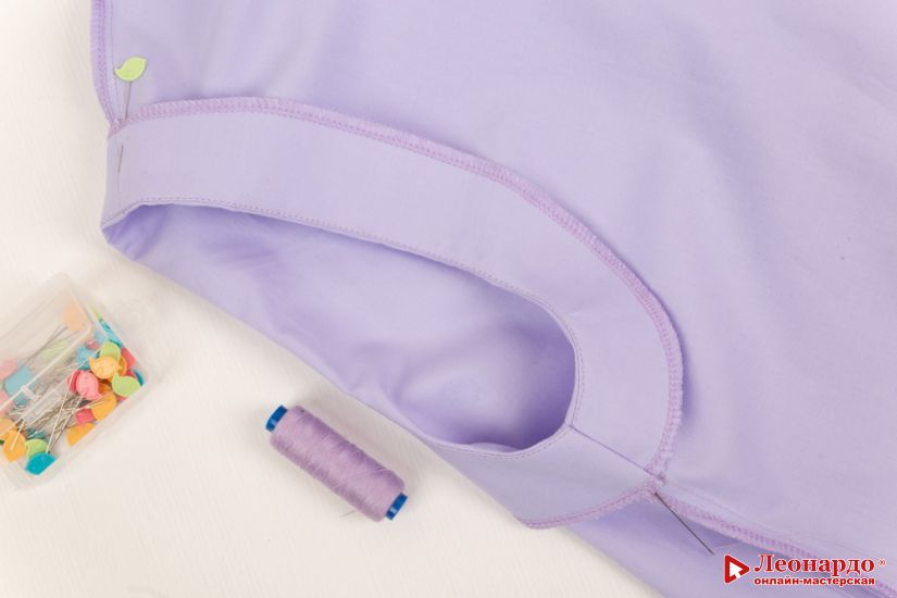 28. К боковому шву с правой стороны пришиваем вторую часть внутреннего пояса на том же уровне, что и первая часть.