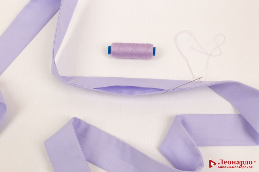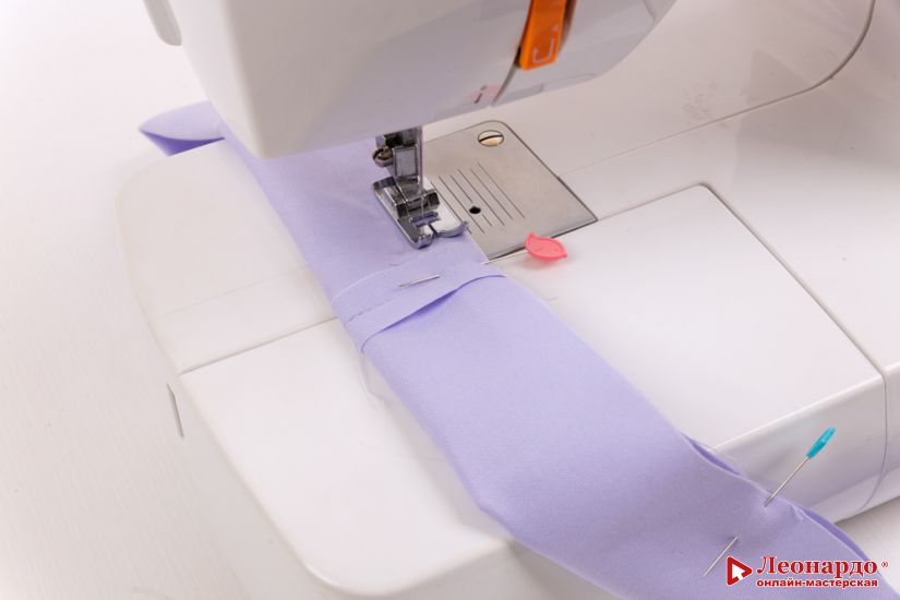 23. Складываем пояс вдоль пополам внутренней стороной внутрь и стачиваем по всей длине, оставляя незашитым участок длиной 8-9 сантиметров для выворачивания.