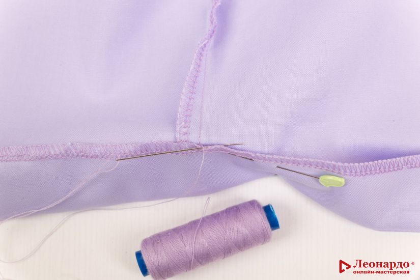 12. Закрепляем обтачку к припускам боковых и плечевых швов. Для этого вручную делаем закрепки в виде нескольких стежков.