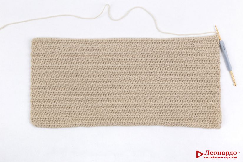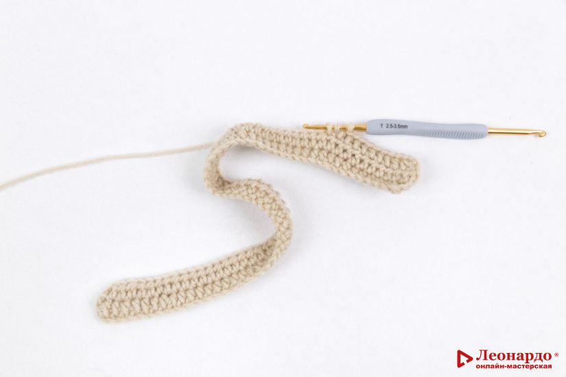 2. Переходим на крючок номер 2,5. 2 вп для подъема. Вяжем полустолбиками с накидом (далее псн) – 76 псн в ряду.