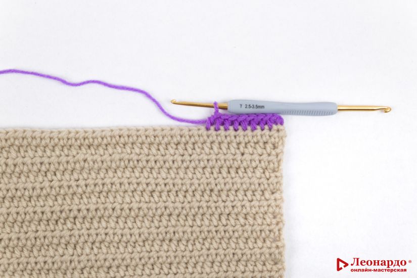 5. В конце, для ровности края, последний псн провязываем в петли подъема предыдущего ряда.