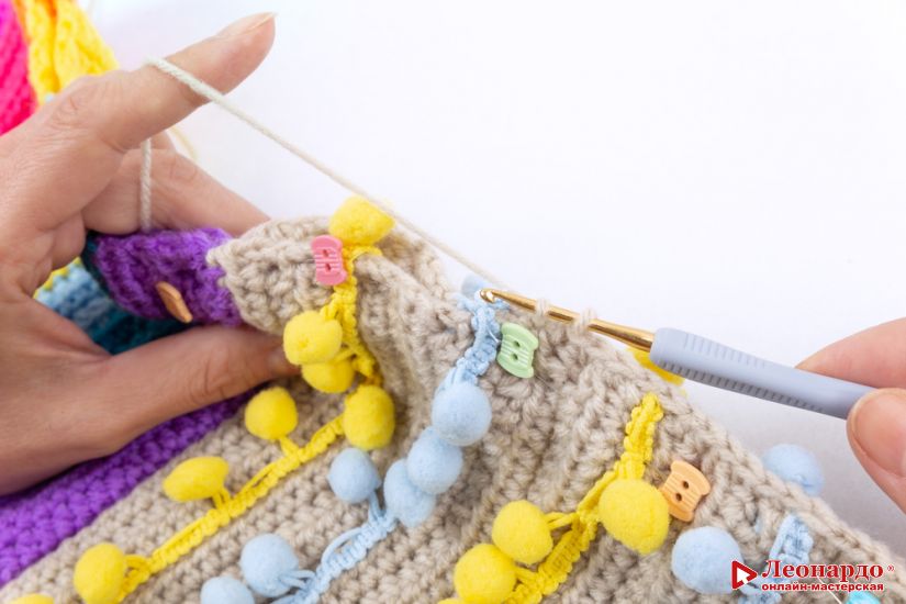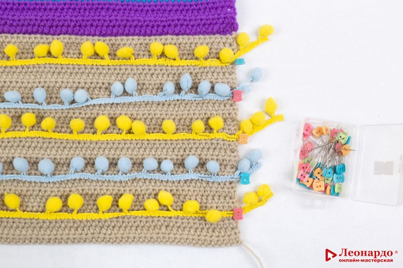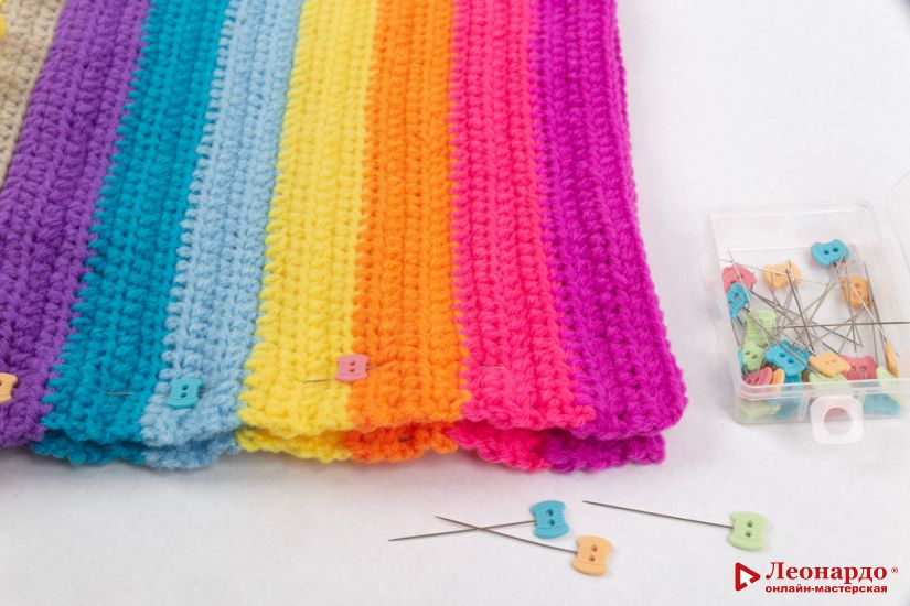 10. Скалываем детали и соединяем края, обвязывая их столбиком без накида.