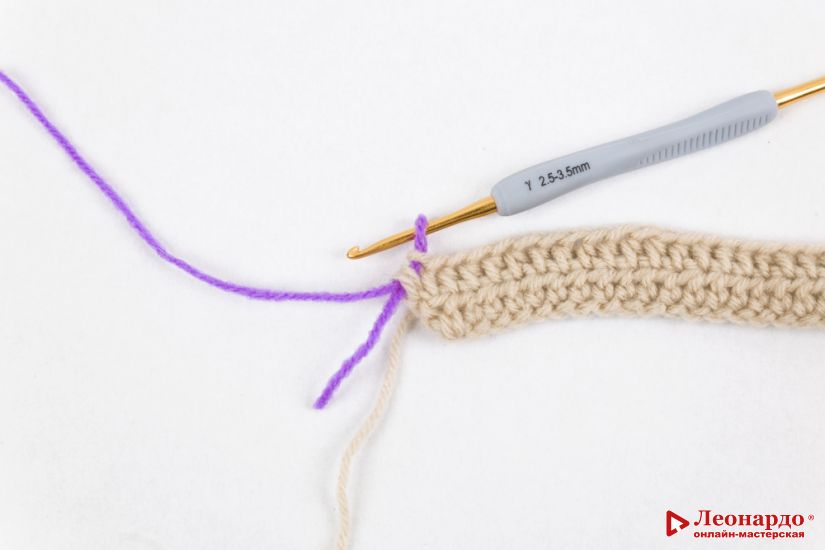 4. Меняем пряжу на фиолетовую (№037 фиолетовый).