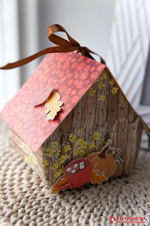 Объемные поделки из бумаги, например, домики часто задают делать в школе на уроках труда. Собирать объемные поделки – интересное занятие. Ведь оно развивает пространственное мышление, моторику, воображение! Творческий процесс создания домика для осени захватит и взрослых, и детей! В такой домик можно спрятать конфеты и подарить друзьям на осеннем празднике, можно хранить записки, а можно повесить на окно и любоваться! Все материалы мы уже подготовили, вам осталось только открыть мастер-класс и начать творить!