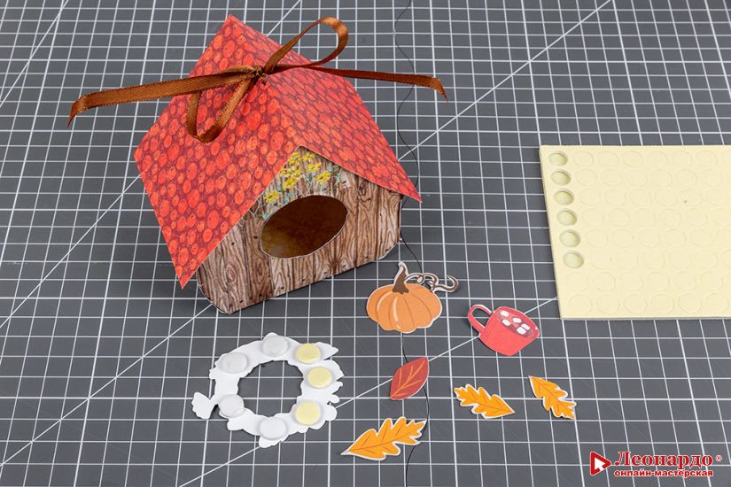9. Приклеиваем элементы к домику на клеевые подушечки "Mr.Painter" (арт. DST-02).