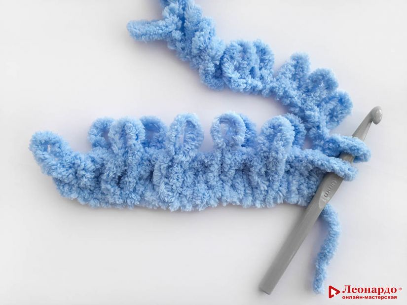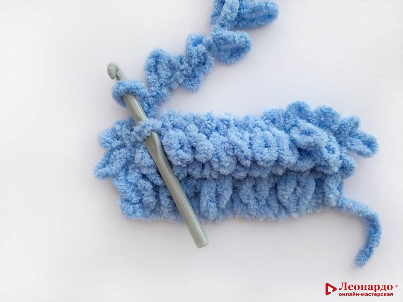 Первый ряд готов, таким образом вяжем все последующие ряды.