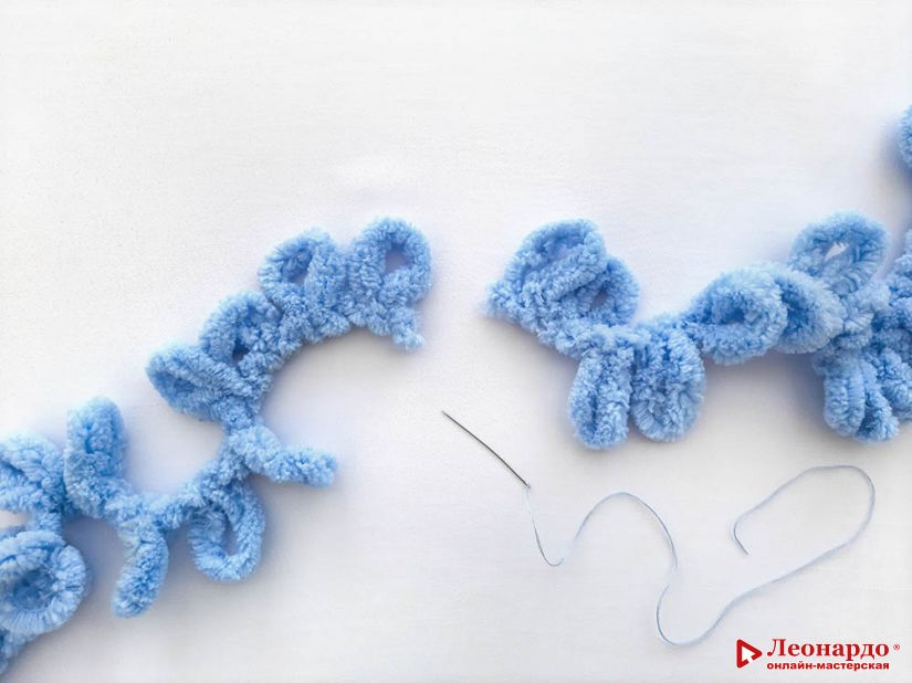 Затем также опускаем петли второго подряда вниз.