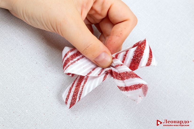 5. Приклеим бантик у основания подвеса с помощью клеевого пистолета.