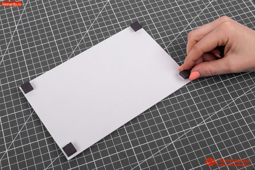 5. С обратной стороны доски желаний приклеиваем по углам на пивной картон квадратные магниты на клеевой основе Mr.Painter (арт. SSM-01).