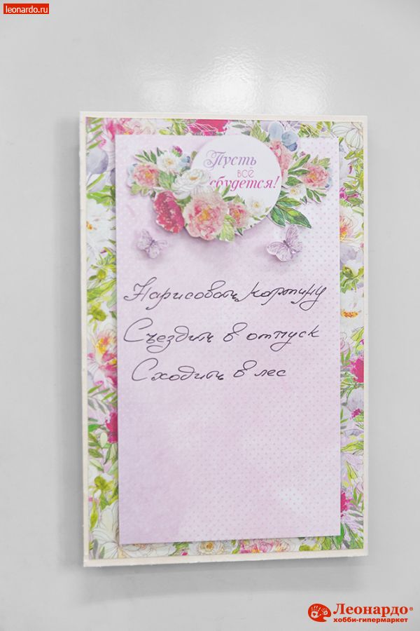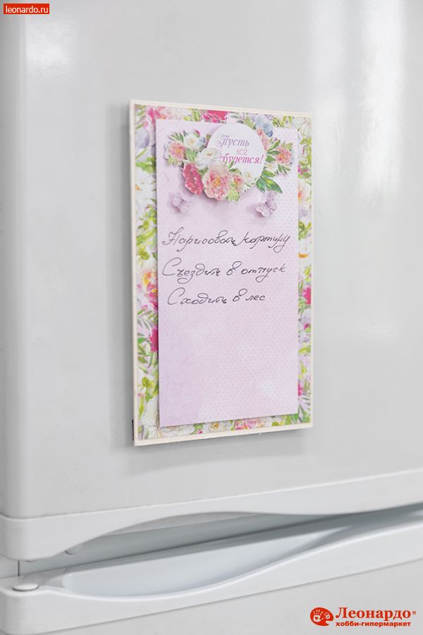 Все любят загадывать желания, нам часто чего-то хочется. Предлагаем сделать магнитную страничку на холодильник из бумаги для скрапбукинга Mr.Painter. Записывайте туда свои пожелания, а близкие будут смотреть и выбирать, что вам подарить. Так легко можно расставить приоритеты в выборе подарка к тому или иному празднику.