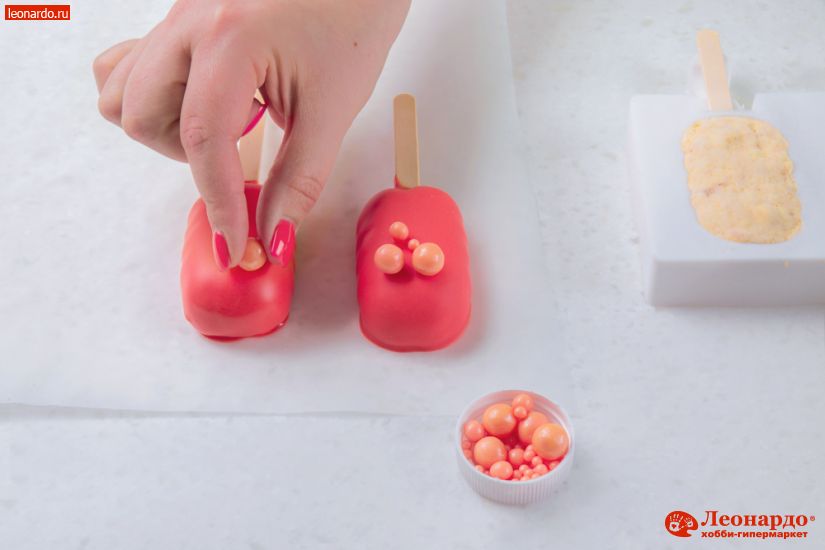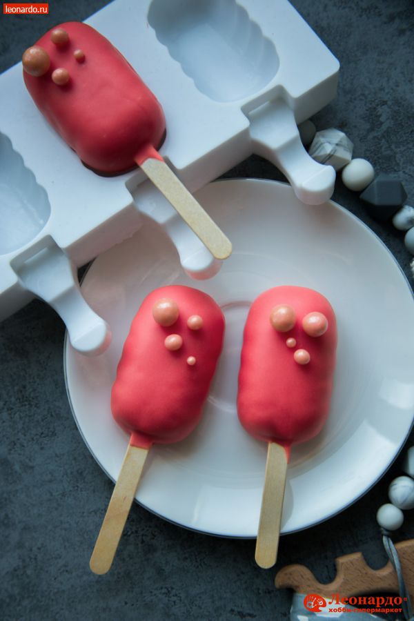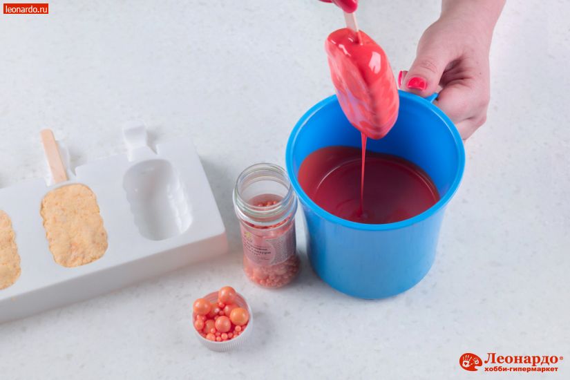 14. Для украшения растапливаем глазурь S-CHIEF (арт. GL) на водяной бане. Окунаем кейк-попсы в глазурь.