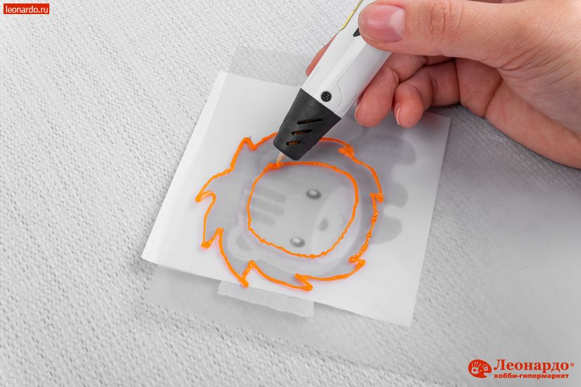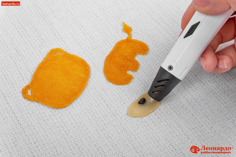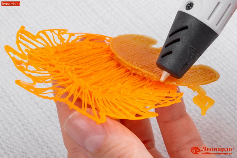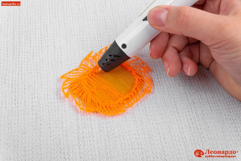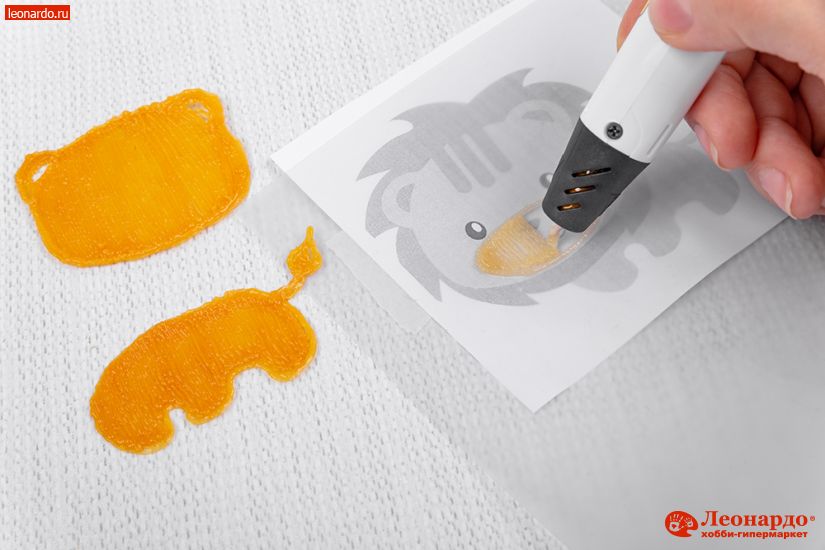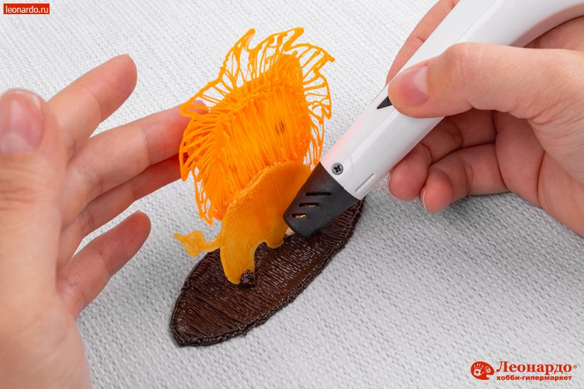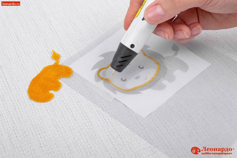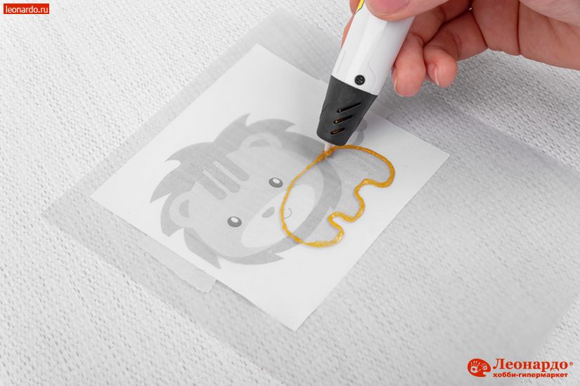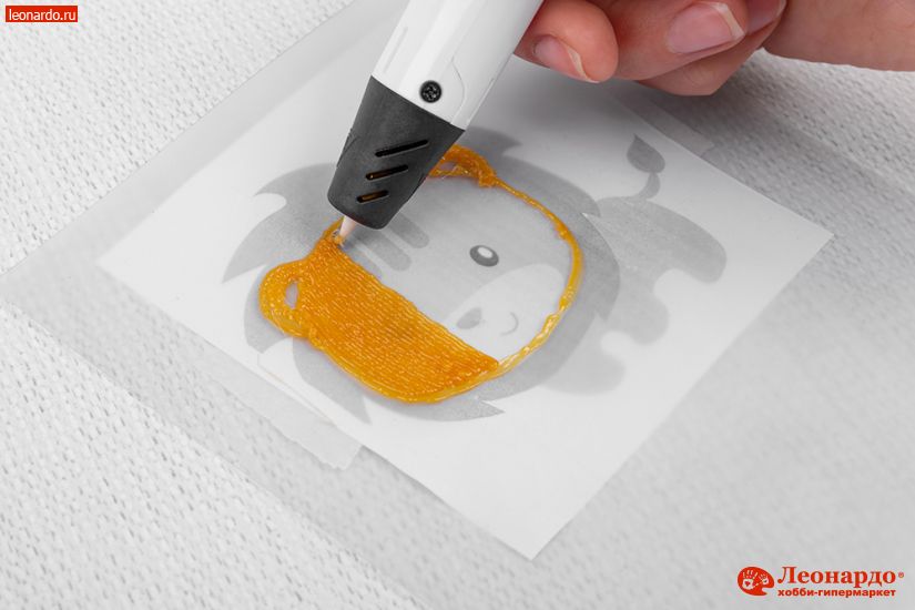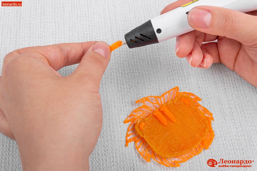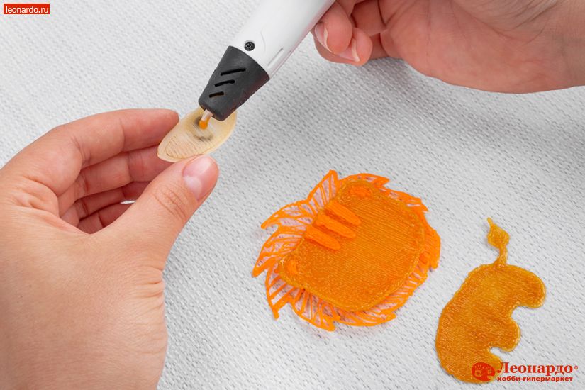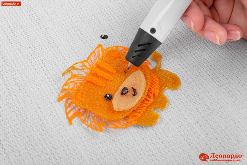 2. Начинаем работу с контура тела львенка. У ручки есть три скорости, вы можете выбрать ту, с которой будет комфортно работать. Замыкаем контур и останавливаем подачу пластика. Затем переходим к заполнению внутреннего пространства. Водим ручкой вертикально, накладывая слои плотно друг к другу.