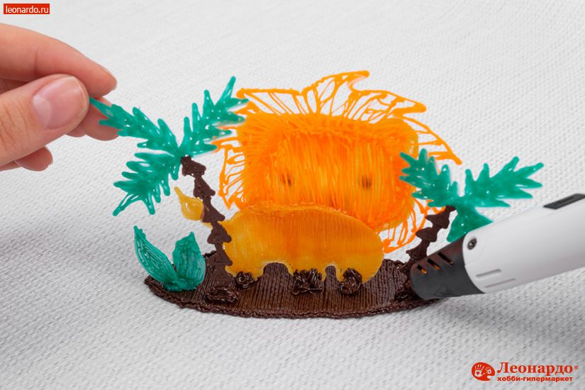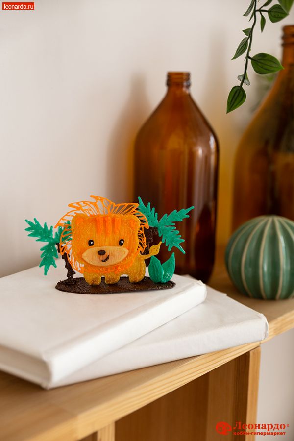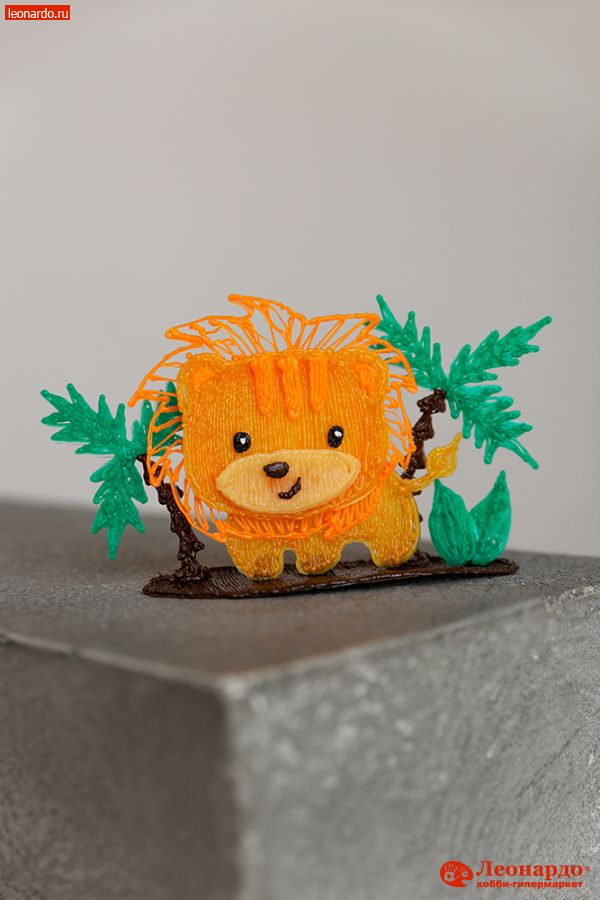 По нашему мастер-классу вы легко сделаете фигурку львенка среди пальм, постепенно собирая его из разных деталей, используя разные цвета пластика и 3D-ручку.