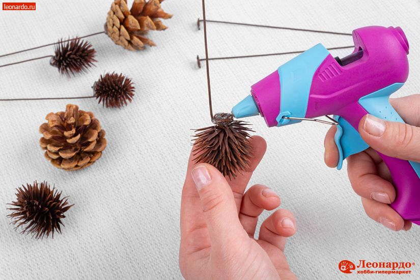3. Декоративные элементы из набора Blumentag (арт. SNJ-03) фиксируем на проволоку клеевым пистолетом Micron (арт. MGG-25).