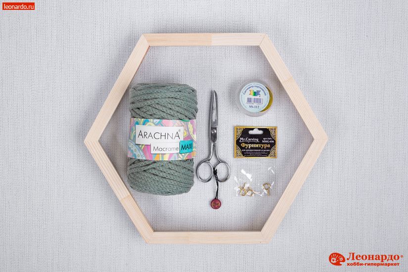 1. Пряжа ARACHNA, арт. Macrame Maxi (80% хлопок, 20% полиэстер, 250 г, 80 м, №15 хаки) – расход 45 м.