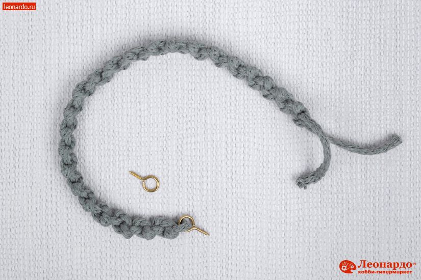 13. Из двух крайних правых нитей тоже плетём цепочку из петельного узла.