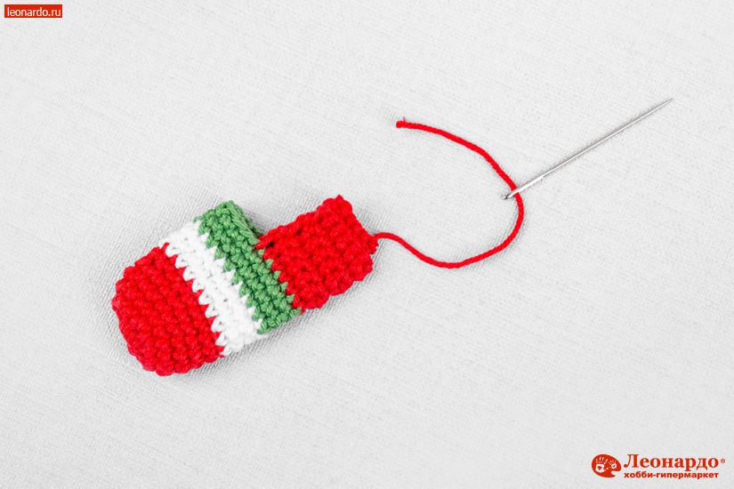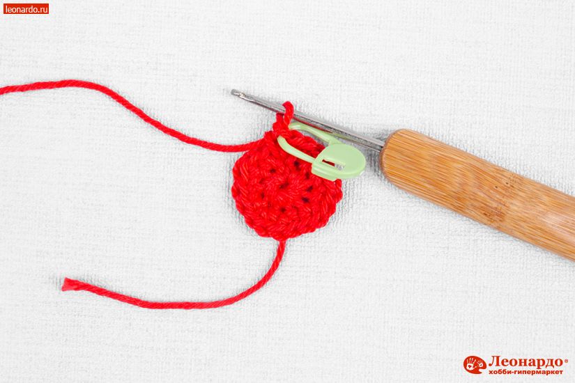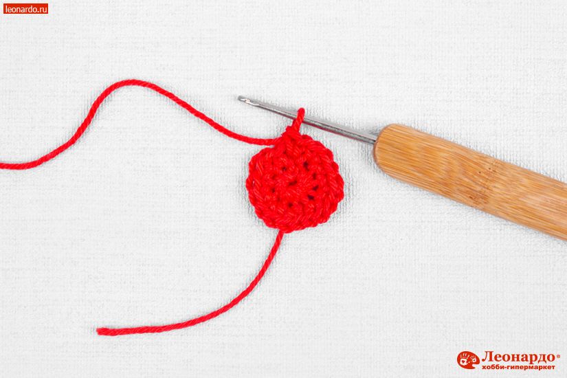 4. Вяжем по 20 СБН с 3-го по 6-й ряд. Далее обрезаем красную нить, оставив небольшой кончик.