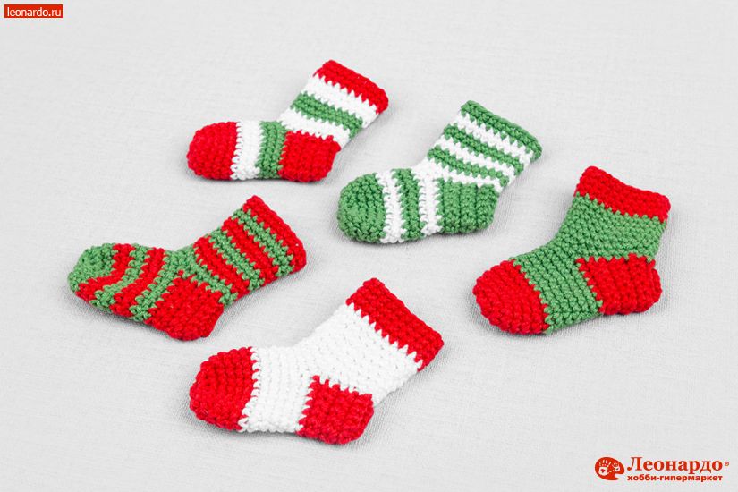 Висящий над камином носок для подарков давно стал одним из символов Рождества в Европе. Традиция распространилась по миру. Прижилась она и у нас в стране, ведь каждый ребенок будет рад подарку, и для этого готов повесить не один, а десять носков. Милая вязаная гирлянда из миниатюрных носочков ручной работы обязательно порадует ваших детей. Она украсит дом и может стать замечательным адвент-календарем. Для создания гирлянды идеально подойдёт пряжа Alpina «ANABEL». Мерсеризованный хлопок отлично держит форму, поэтому даже крошечный носочек, связанный крючком, будет выглядеть очень нарядно и красиво. Нить гладкая, мягкая и прочная. Выбор расцветок огромен. Для нашего фото-мастер-класса мы использовали классические рождественские цвета – белый, красный и зелёный, но вы можете выбрать те, которые максимально гармонируют с интерьером вашего дома.