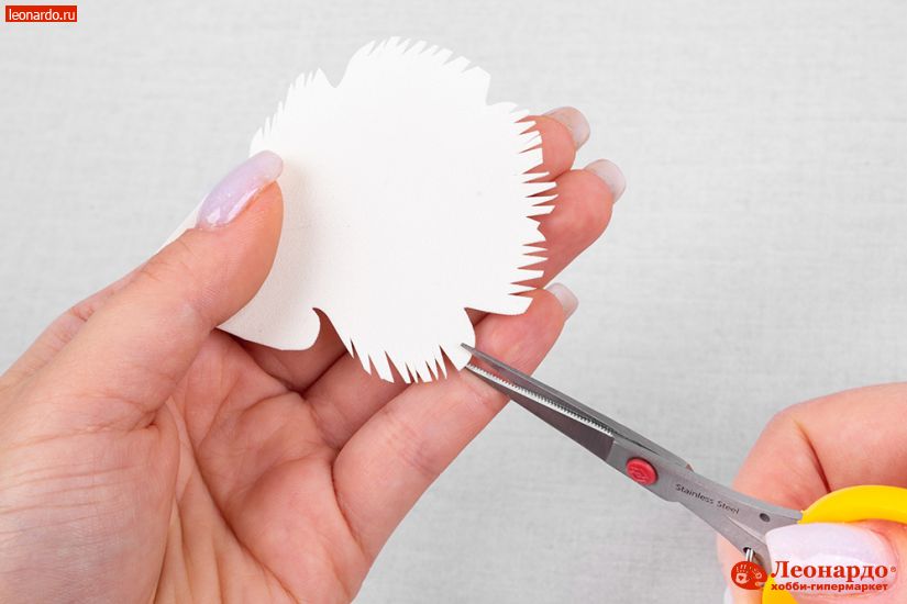 3. Затем край лепестка нарезаем мелким длинным зигзагом, чтобы создать еще больший объем, ведь попугайный тюльпан отличается очень пушистыми и объемными лепестками.