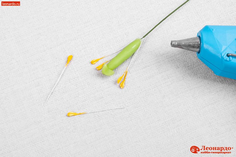 17. Приклеиваем 8 тычинок к пестику по кругу клеевым пистолетом Micron (арт. MGG-01).