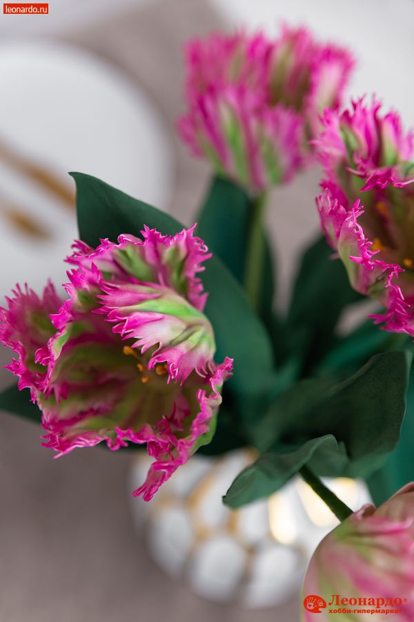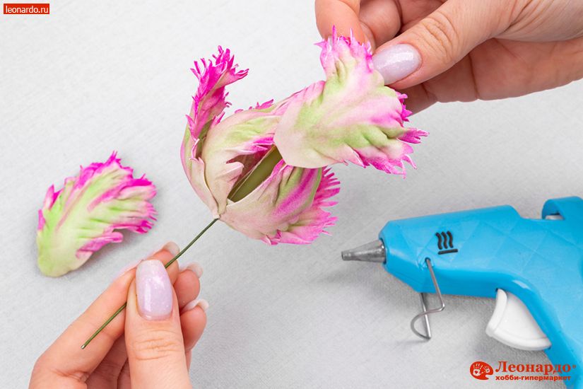 Природа создала столько невероятных, уникальных и необыкновенных созданий, что вдохновляться ей можно бесконечно! Наше вдохновение сегодня – попугайные тюльпаны. Они названы так из-за особенной формы лепестков и потрясающей красоты окраски. Почувствуйте себя немного волшебником, создавая эти цветы своими руками из пластично замши Blumentag / Fiorico.