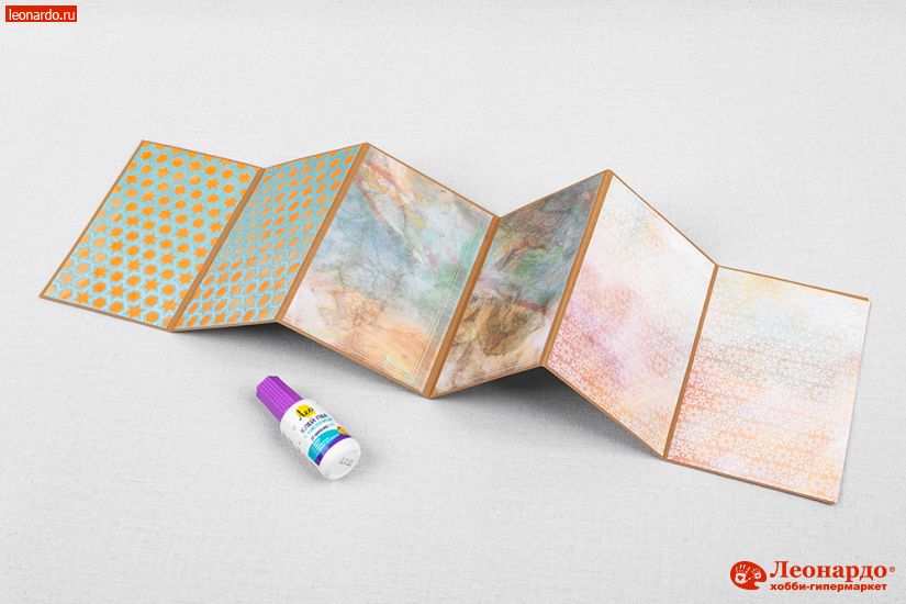9. Приклеиваем подложки для фотографий на странички альбома-гармошки.