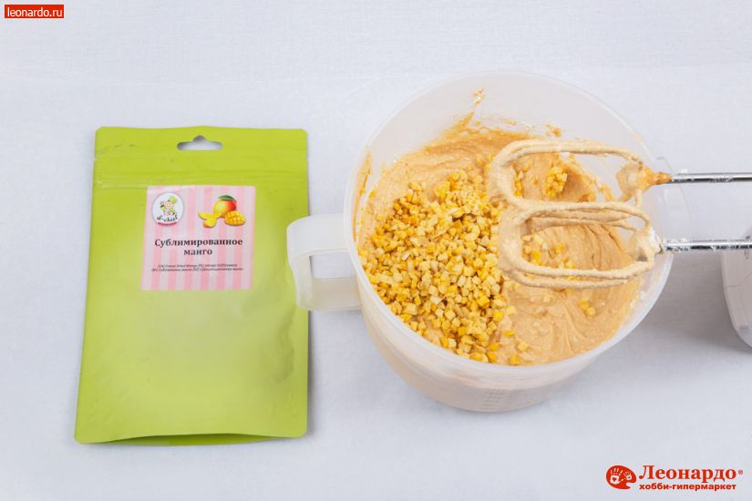 5. Добавляем сублимированные фрукты (количество по вкусу) S-CHIEF (арт. Манго) и перемешиваем ложкой или лопаткой.